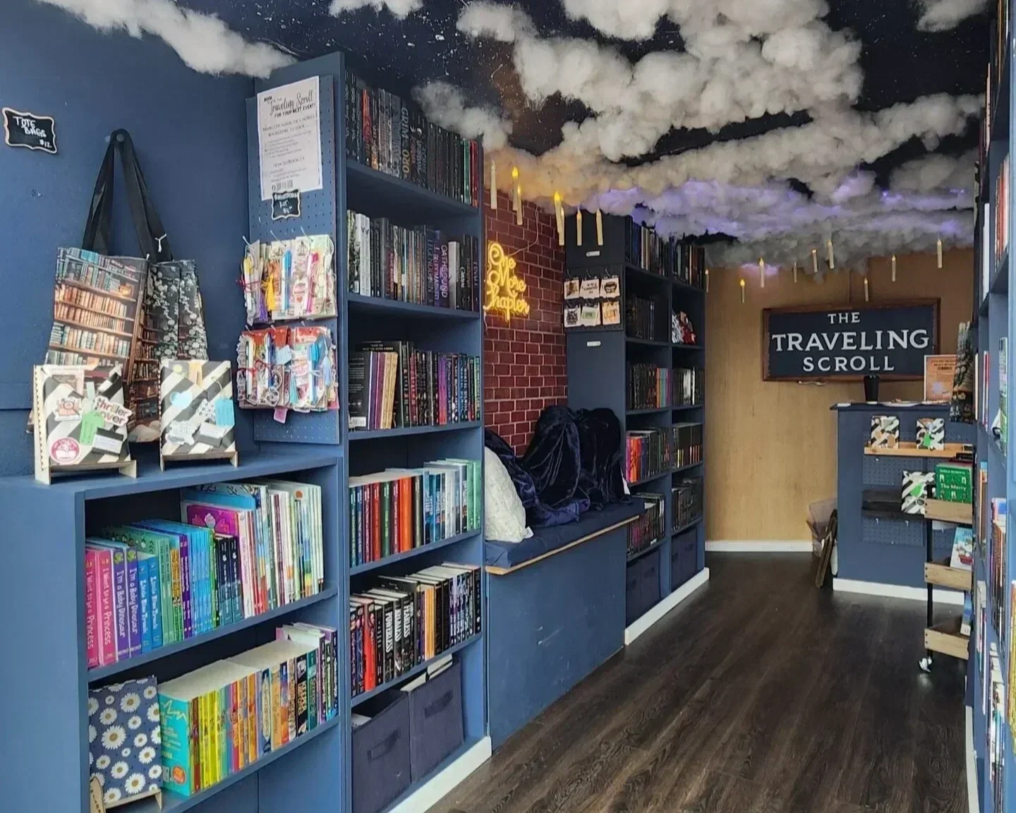 The Traveling Scroll is a cozy, fantasy-inspired mobile bookstore that travels across North Carolina.